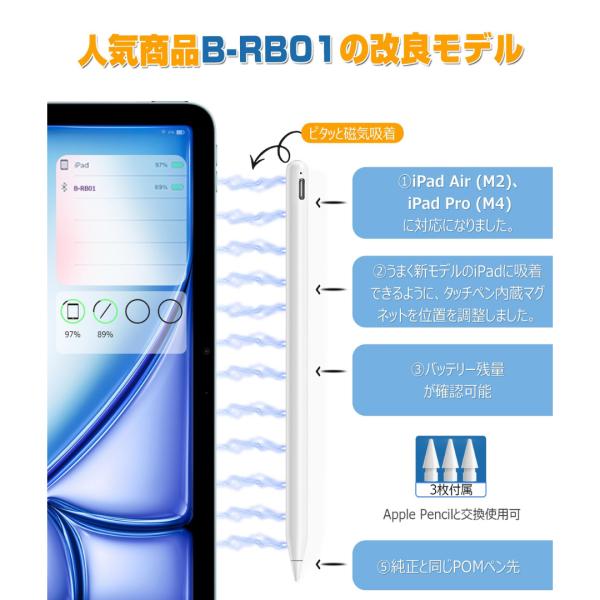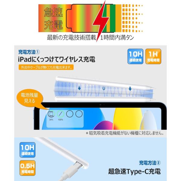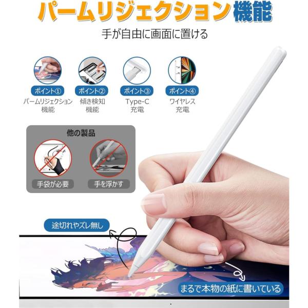 Ciscle ciscle スタイラスペン ipad タッチペン 極細 交換用ペン先 Apple Pencil 互換 互換品 磁気吸着 Type-C 急速充電 2018〜2025年 iPad専用