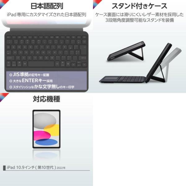 エレコム ELECOM iPad A16 11世代 / 10.9インチ iPad 10 キーボード 日本語配列 着脱可能 3段階角度調整 ブラック TK-CA12BPBK