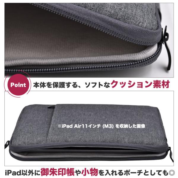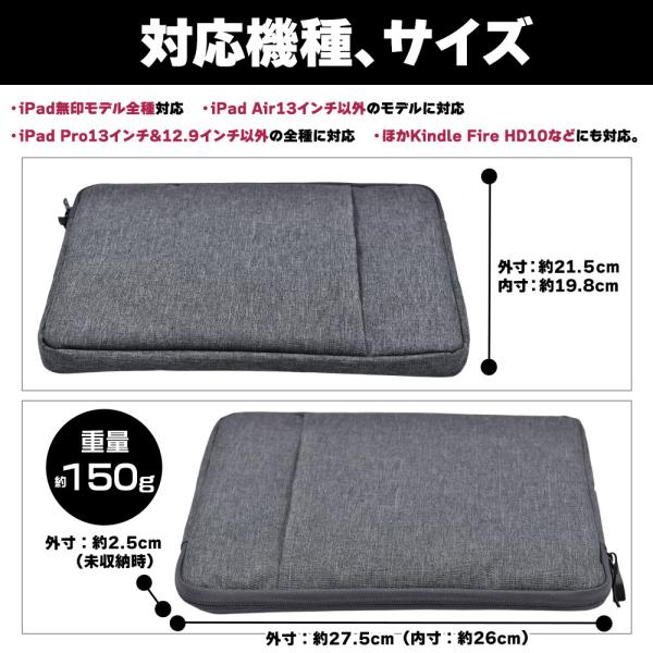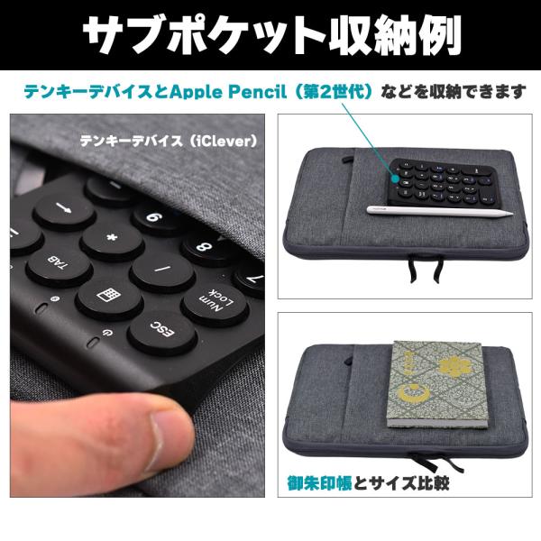 ボーナスストア対象 ポケット付き iPad ケース Air11インチ Pro10.5 9.7 キャンバス スリーブ グレー air3 air2 Kindle Fire HD10 テンキー収納