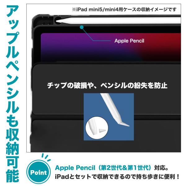 ボーナスストア対象 軽量 iPadケース ペンシル収納可 ブラック 横置き 平置き 薄型 ipad mini7 mini 6 5 4 3 2 黒 スタンド機能 アイパッド ミニ カバー