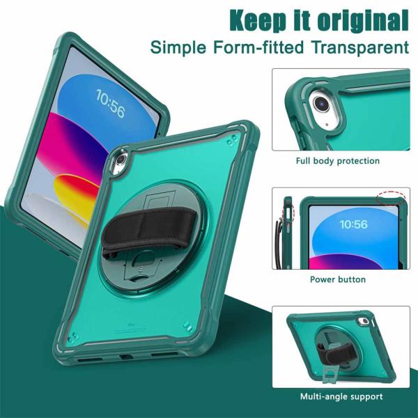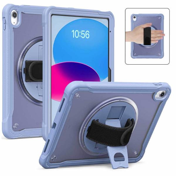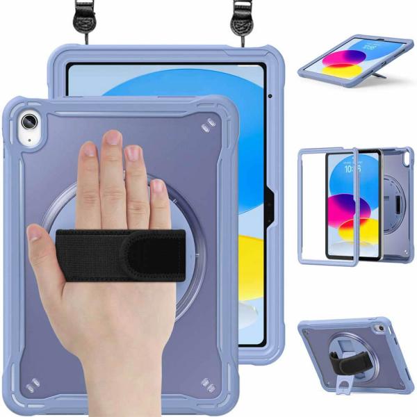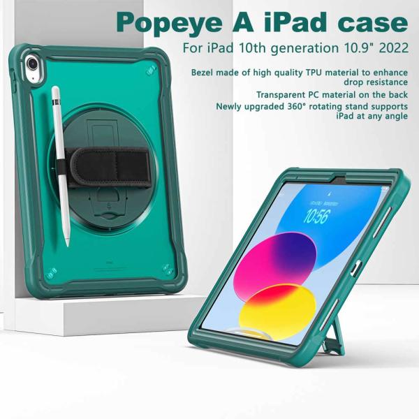 工事現場最適 iPad 第10世代 10.9インチ専用ケース 耐衝撃 Gフック式ハンドストラップ 360°回転スタンド ペン収納 ショルダーストラップ フィルム付き前面フレ