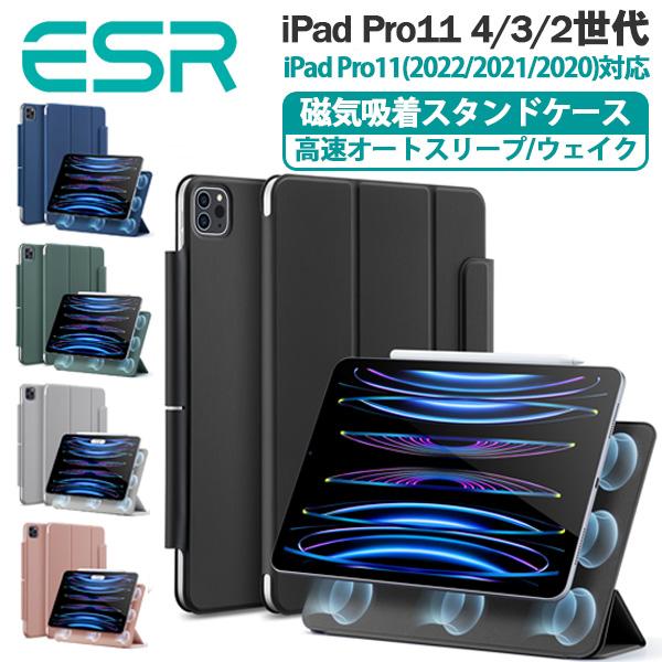 ESR iPadケース Pro11 第4/3/2世代(2022/2021/2020) 磁気吸着 マグネットケース オートスリープ/ウェイク Pencil2対応 充電 レビュー投稿 100日保証