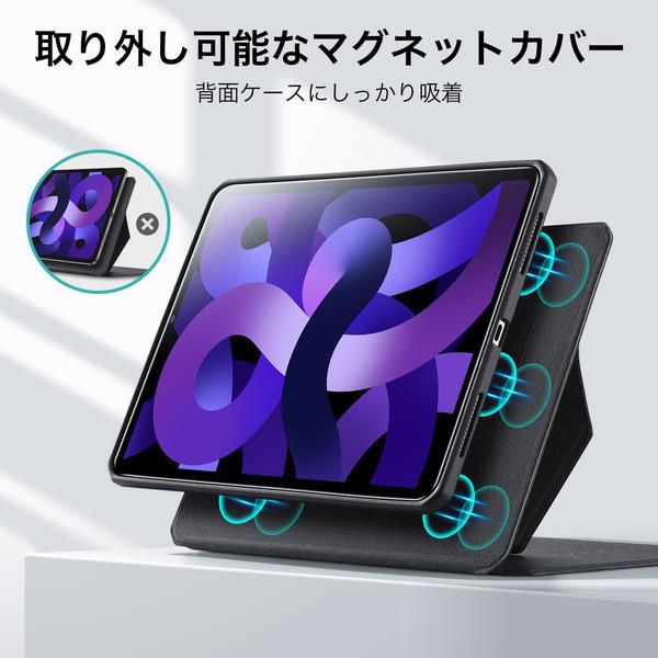 ESR iPadケース 分離型 マグネット吸着 Air5 2022 Air4 2020 10.9インチ Touch ID対応 8つの角度スタンド 衝撃保護 Pencilホルダー付き オートスリープ機能