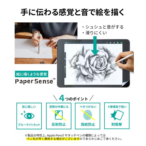 LOE(ロエ) 10.2 第7世代 (2019) 保護 フィルム 上質紙に書いているような ライティングタッチ ブルーライトカット ペーパーセンス フィルム