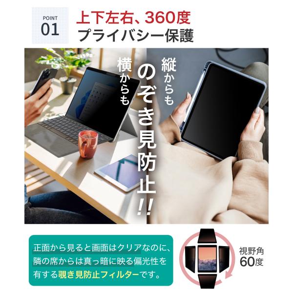 LOE(ロエ) 360度 ナノサクション式 覗き見防止フィルム iPad mini6 用 iPad mini 第6世代 プライバシーフィルター ブルーライトカット 保護フィルム 反射防止