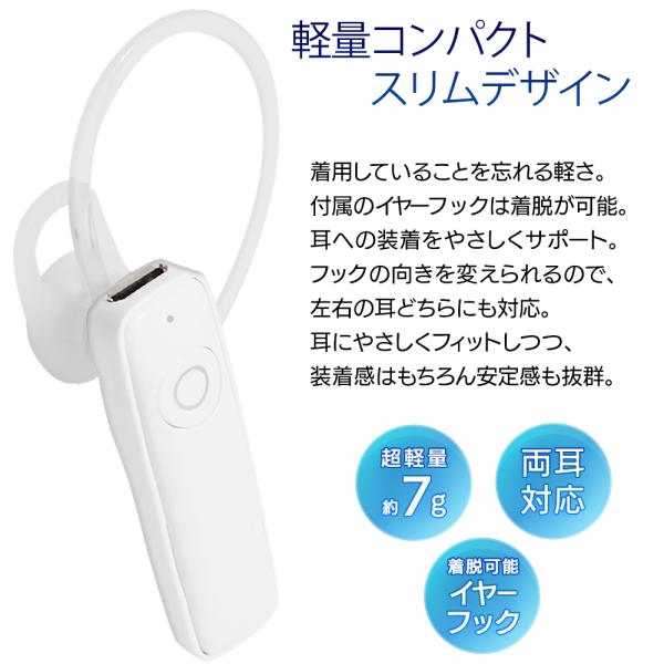 ワイヤレスイヤホン Bluetooth マイク内蔵 超軽量 イヤホンマイク 充電式 クリア通話 両耳兼用 高音質 耳掛け iPhone Android 送料無料 3M◇ ハンズフリーIX