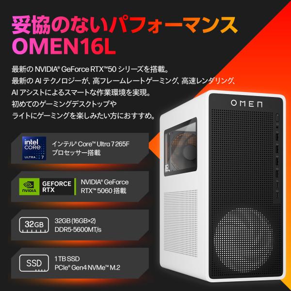 デスクトップ 新品 ゲーミングPC OMEN 16L Gaming Desktop TG03 Core Ultra7 プロセッサー 265F 32GB メモリ 1TB M.2 SSD Windows11(型番:BW7T2PA-AAAA)
