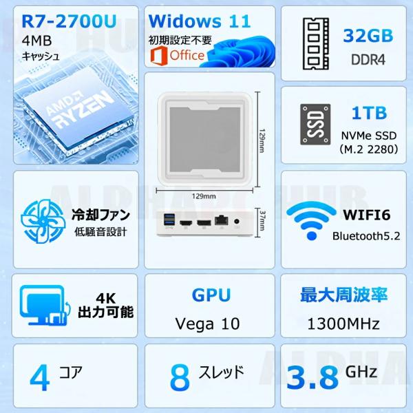 ミニPC 新品 Windows11 ミニパソコン mini pc office付き デスクトップパソコン AMD Ryzen7 WIFI搭載 小型pc メモリ16GB SSD1TB 静音 省スペースpc 初期設定済