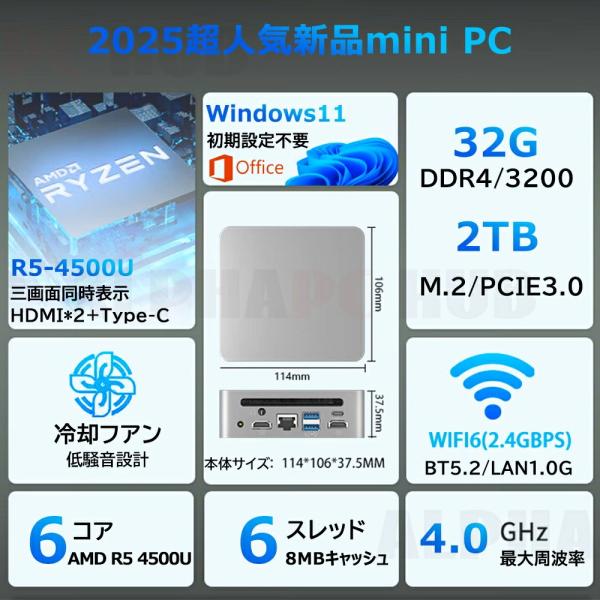 ミニPC minipc Windows 11 AMD Ryzen7 5800U 8コア16スレッド mini pc DDR4 16GB+512GB miniパソコン 高速 VESA対応 4K 小型PC WiFi 6 LANポート 小型 勤務