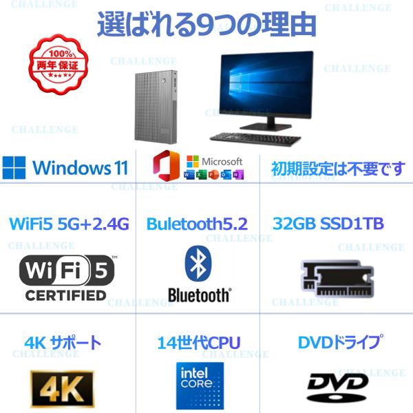 ミニPC 新品 Windows11 ミニパソコン mini pc office付き 4K 14世代CPU 初期設定済 デスクトップパソコン intel core i5/i7 メモリ32GB SSD1TB 軽量 静音 小型