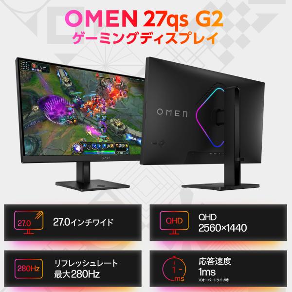 モニター 新品 OMEN 27qs G2 280Hz QHD ゲーミングディスプレイ 2560 x 1440 IPS Black 非光沢 27.0インチワイド 1677万色 スピーカー (型番:AW3V1AA-AAAA)