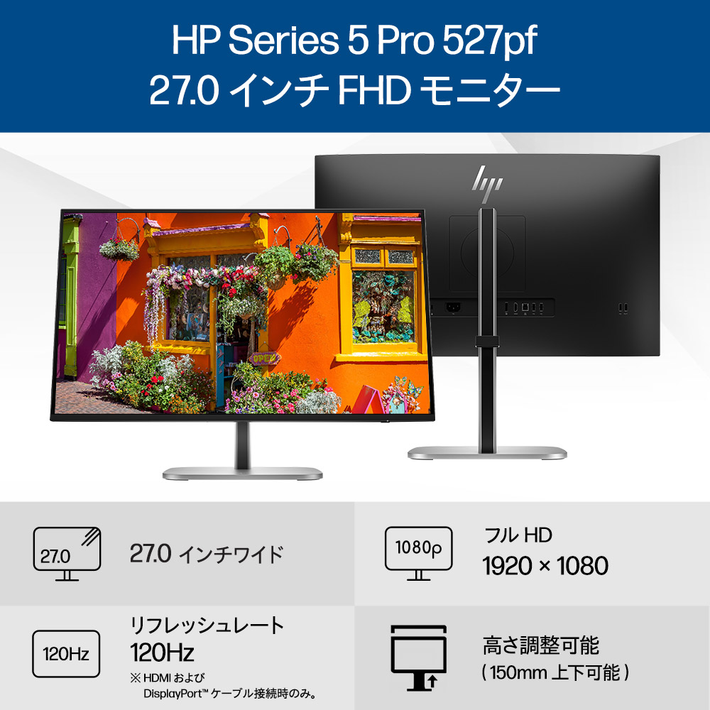 ポイントアップ モニター 新品 HP Series 5 Pro 527pf FHD ディスプレイ IPS 27.0インチ フルHD 非光沢 高さ調整 角度調整 120Hz 3年保証 (型番:B28F5UT-AAAA)