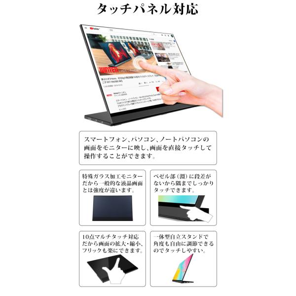 WINTEN モバイルモニター タッチ ゲーミング 15.6インチ ディスプレイ タッチパネル pcモニター グレア 高画質 液晶パネル フルHD 1年保証 WT-156LTF-BK 5581