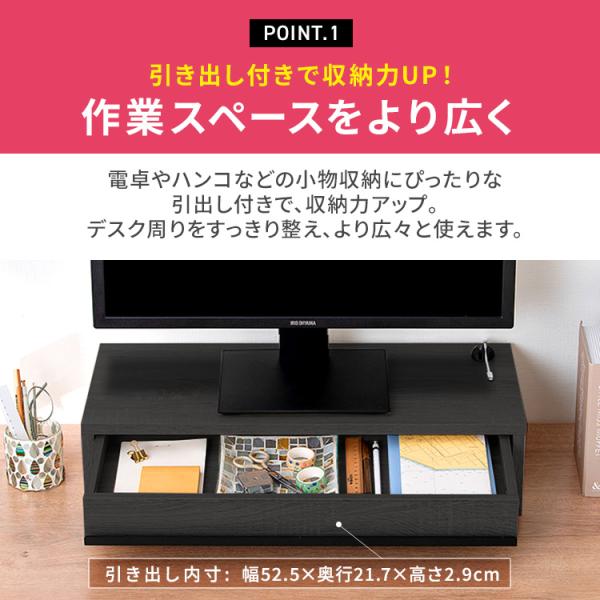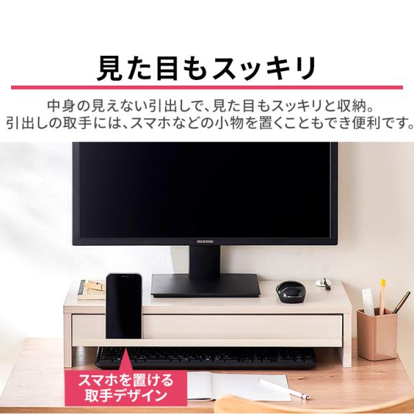 モニター台 引出し付き MNS-590H-BO MNS-590H-OW MNS-590H-LN ブラックオーク オフホワイト ライトナチュラル アイリスオーヤマ