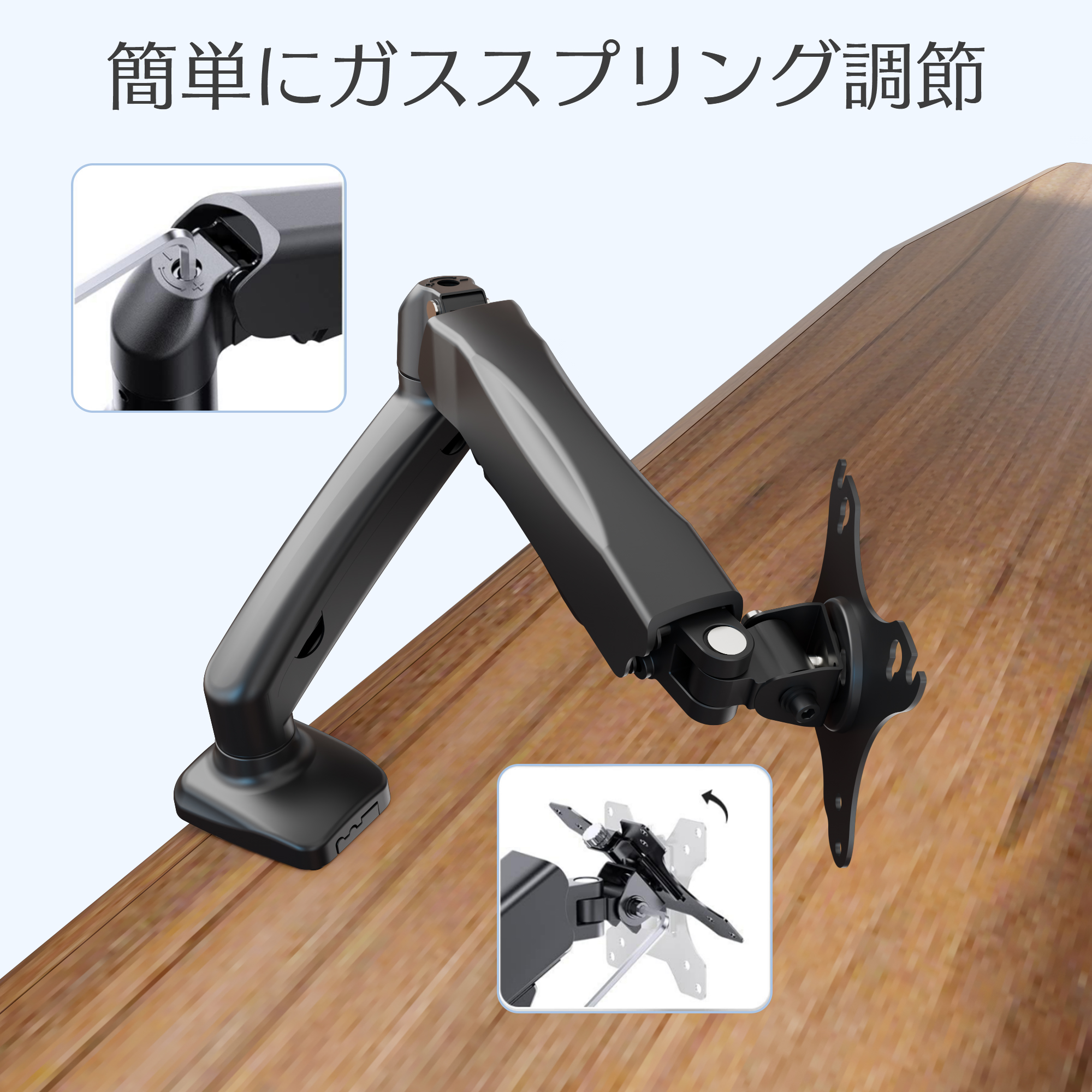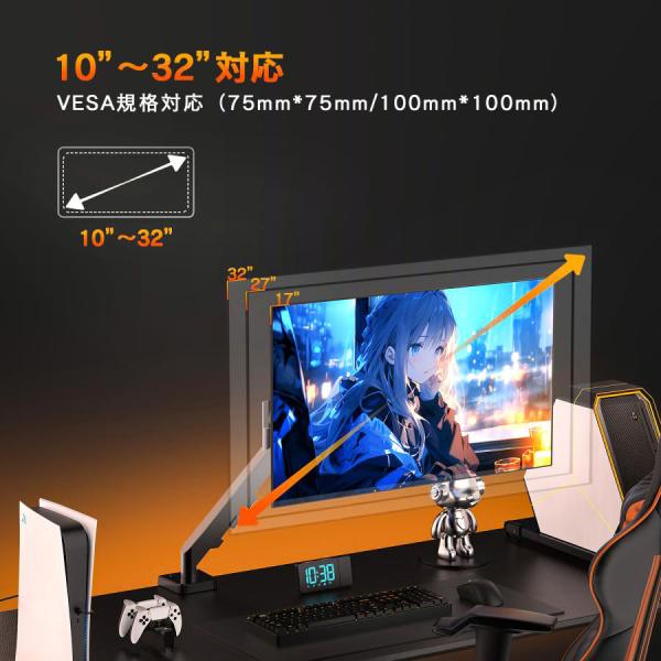 保証付 モニター アーム 液晶ディスプレイ アーム ガススプリング式 ガス圧式 モニタースタンド 13〜27 インチ対応 耐荷重2〜6.5kg 爆買