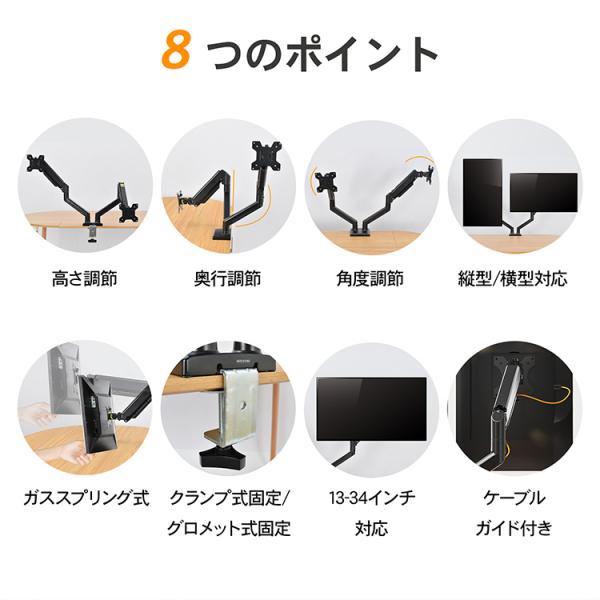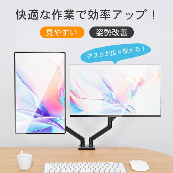 モニターアーム 2画面 ガス デュアル アーム パソコン モニター pcアーム pcモニター デスクトップパソコン ディスプレイ 34インチ ロング デュアルモニター