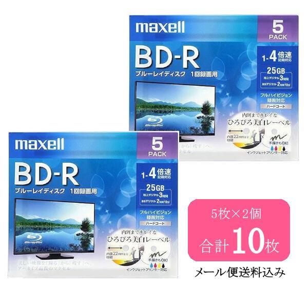 [メール便発送]マクセル maxell 録画用 BD-R 25GB BRV25WPE5S 5枚パック×2個 計10枚 1-4倍速 標準130分 1回録画用 ブルーレイディスク ブルーレイ ディスク…