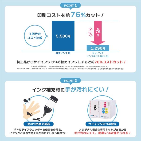 キャノンインク BC- 365XL / 366XL / 360XL / 361XL / 345XL / 346XL / 340XL / 341XL / 310 / 311 対応 ブラック+カラーSET ワンタッチ詰め替えインク