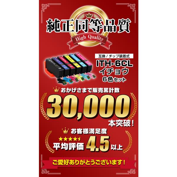 ITH-6CL イチョウ 6色パック ICチップ装着式 互換インクカートリッジ 増量版 EPSON EP-709A EP-710A EP-711A EP-810AW EP-810AB EP-811AW EP-811AB