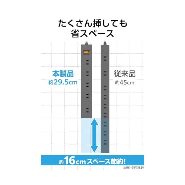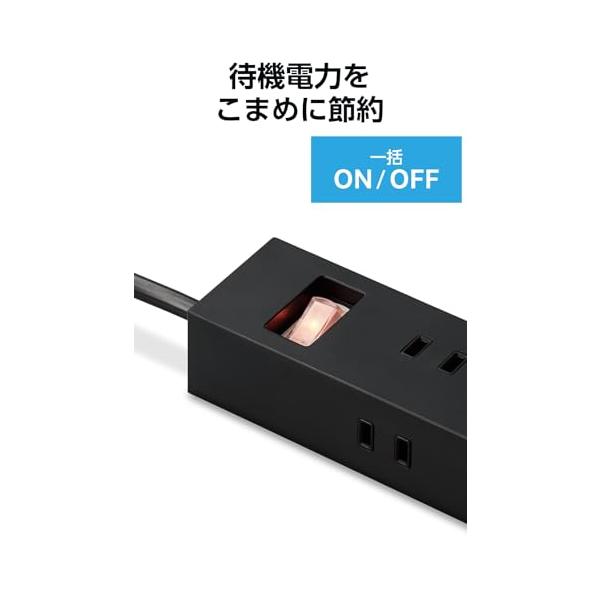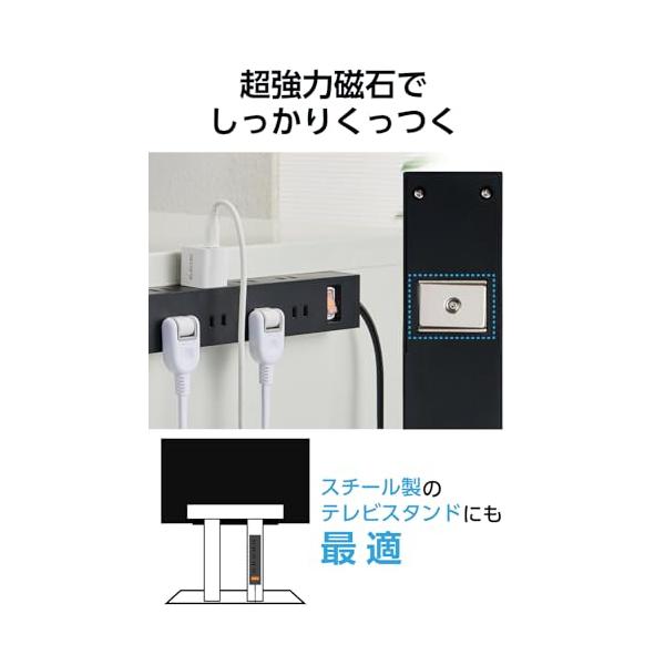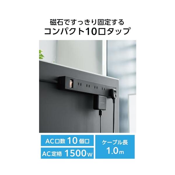エレコム 電源タップ 雷ガード 10個口 差し込み口2面 1m マグネット ほこりシャッター付 スイングプラグ 一括スイッチ コンパクト ブラッ
