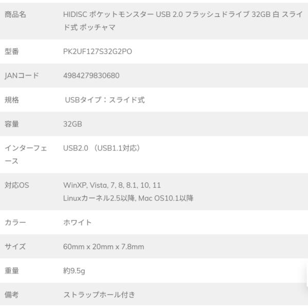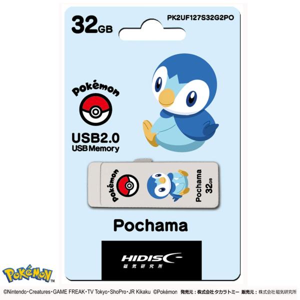 USBメモリ 32GB ポケットモンスター ポッチャマ USB2.0 HIDISC ハイディスク スライド式 かわいい ポケモン ホワイト PK2UF127S32G2PO ◆メ