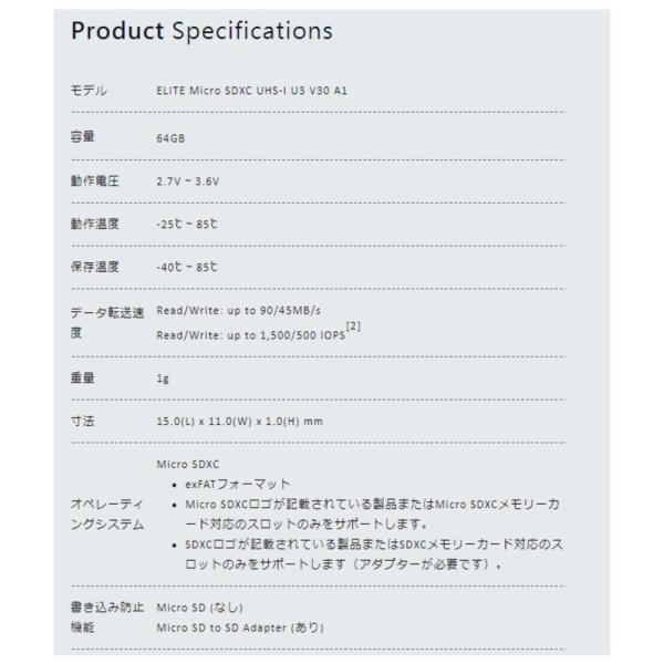 64GB microSDXCカード マイクロSD Team チーム 4Kビデオ録画向け Elite A1 UHS-I U3 V30 R:90MB/s W:45MB/s SDアダプタ付 TEAUSDX64GIV30A103 ◆メ