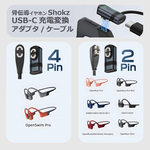 【750円から〜2個目半額/3個目タダ】Shokz骨伝導イヤホン用 USB-C充電変換アダプター 2ピン/4ピン対応 強力マグネット&過電圧保護機能付き 送料無料