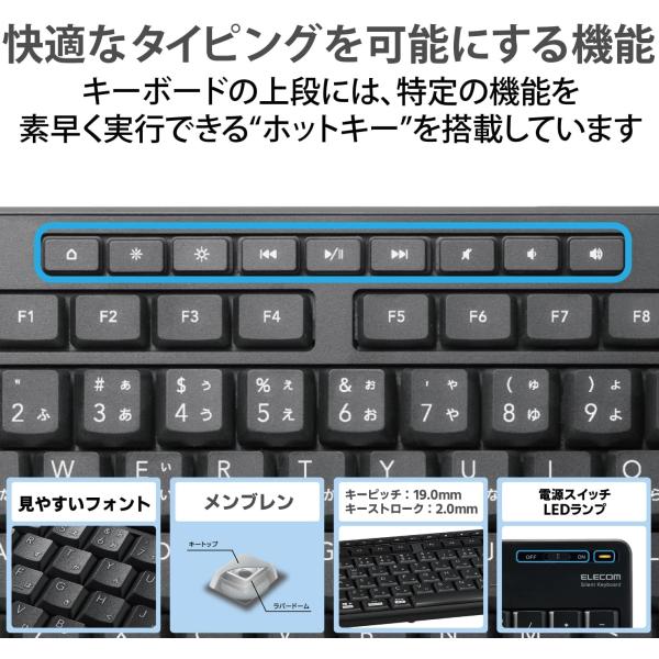エレコム ワイヤレス フルキーボード 静音設計 抗菌 ブラック TK-FDM116SKTBK