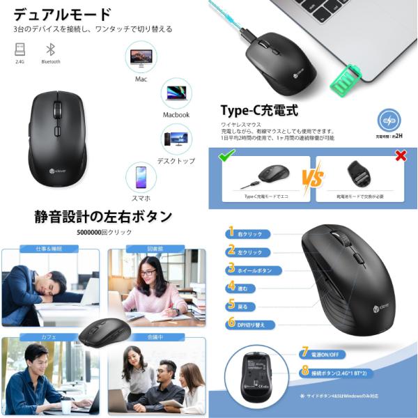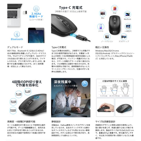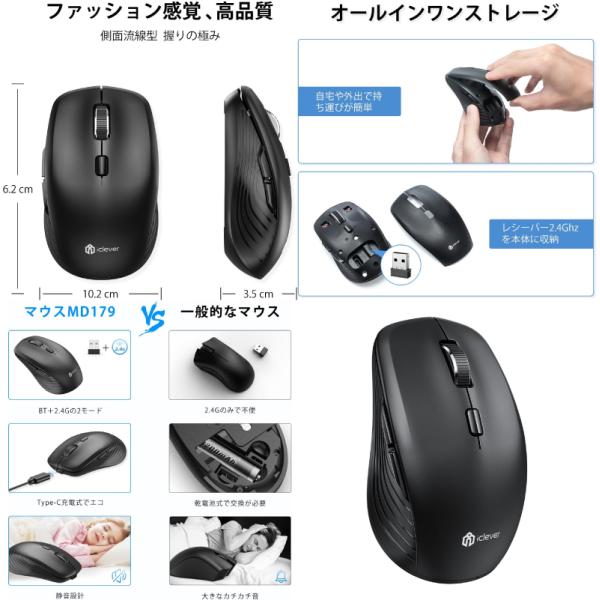 iClever MD179 ワイヤレスマウス Bluetooh 5.1 / 2.4GHz 両対応 ブラック 正規販売店