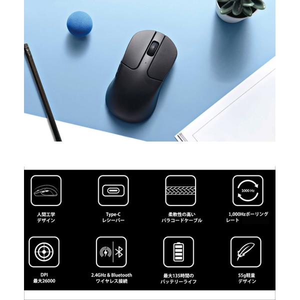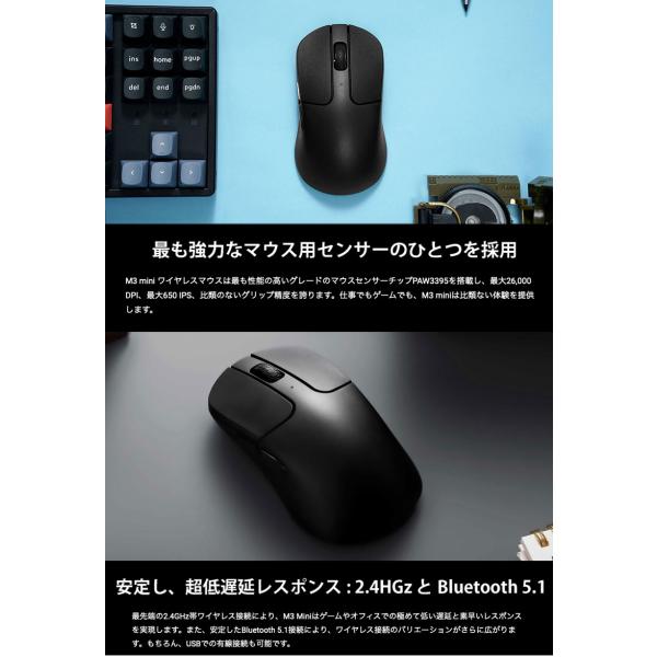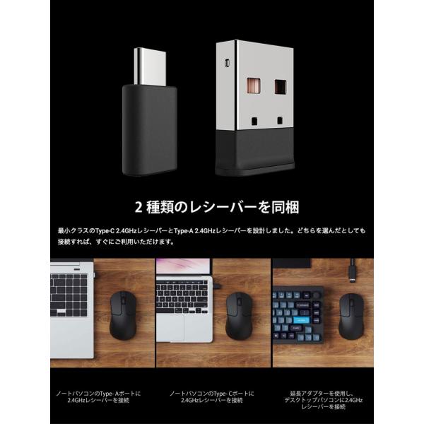 Keychron M3 Mini ワイヤレスマウス 有線 / Bluetooth 5.1 / 2.4GHz ワイヤレス対応 USB A / Type-C レシーバー付属 ブラック