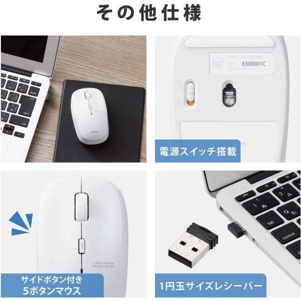 エレコム ワイヤレスマウス M-BL21DBSKWH 静音 抗菌 5ボタン 3段階ポインタ速度可変 ホワイト