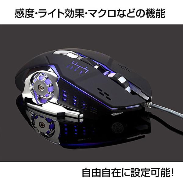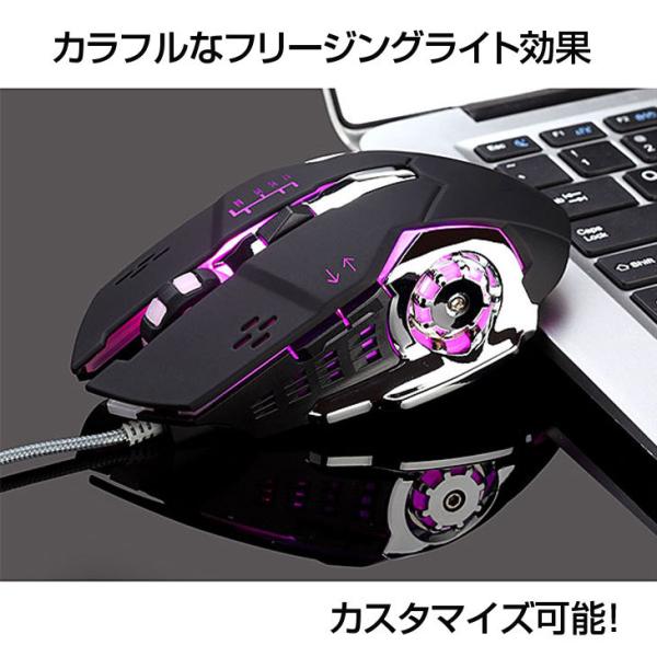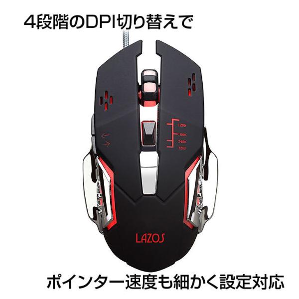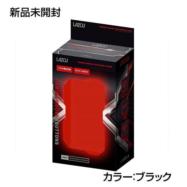 Lazos L-MSG6-B 新品 USB 有線ゲーミングマウス 6ボタン マクロ機能搭載 フリージングライト カスタマイズ可能 人間工学的デザイン DPI切り替え [ブラック]