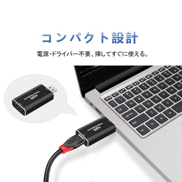 ビデオキャプチャー hdmi to usb2.0 キャプチャーボード ビデオキャプチャーケーブル Mac PS4 Nintendo SWITCH OBS対応 4Kビデオをデータ化 オンライン配信 会議