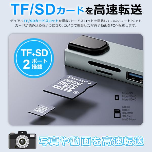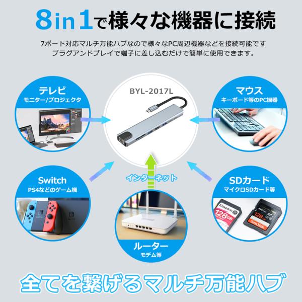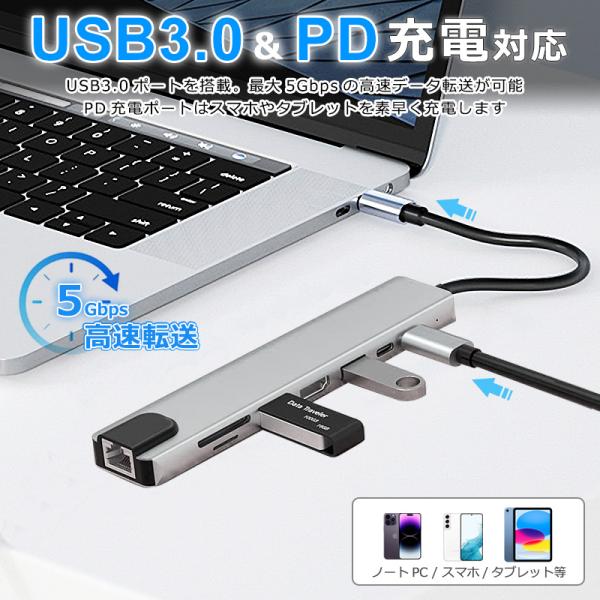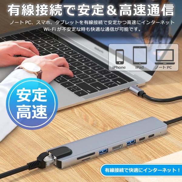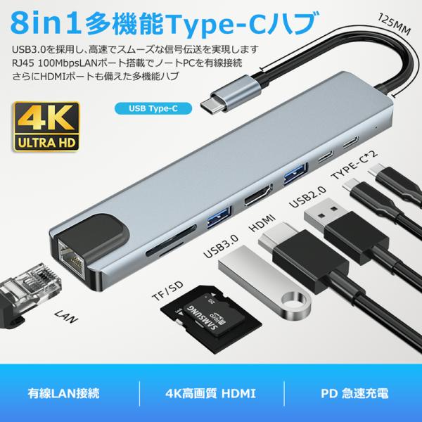 USBハブ 8ポート USB拡張 4K HDMI PD充電 hub USB-C USB3.0 TF SD カード 変換 有線 LAN アダプター スマホ Macbook Windows ノートPC