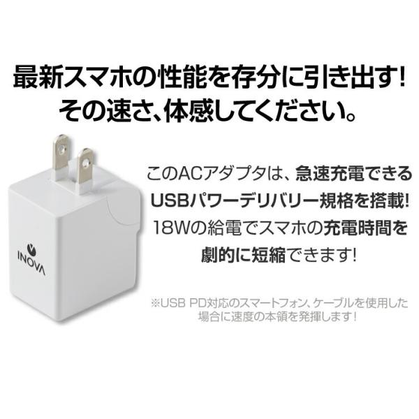 イノバ USB充電器 USB Type-c PD パワーデリバリー タイプC 充電 スマホ ACアダプタ コンセント 充電器 18W 3A .3R