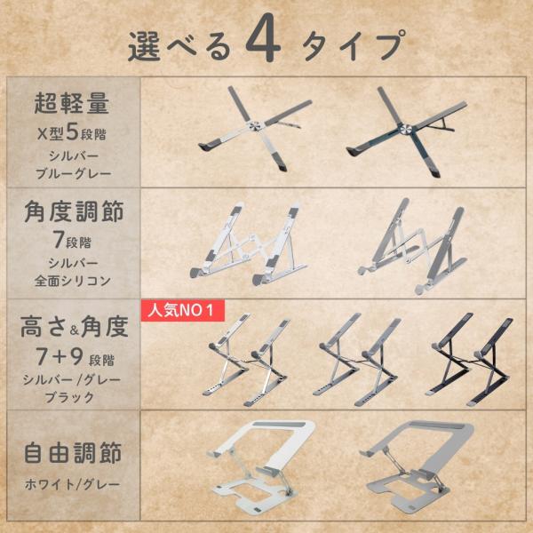 ノートパソコンスタンド 折りたたみ式 アルミ製 7+9段階 Z型 7段階調整 9段階調整 放熱 冷却 滑り止め 軽量 テレワーク 姿勢改善 17インチ対応 爆買