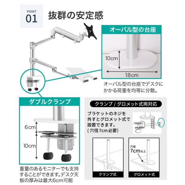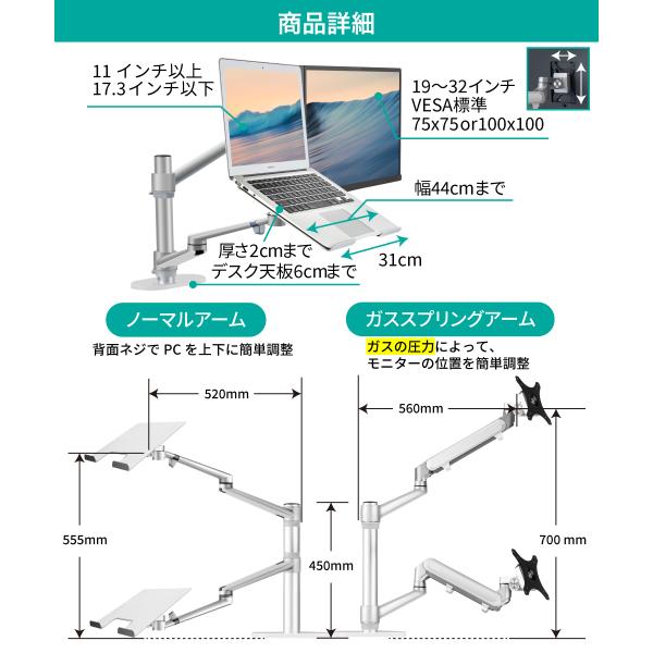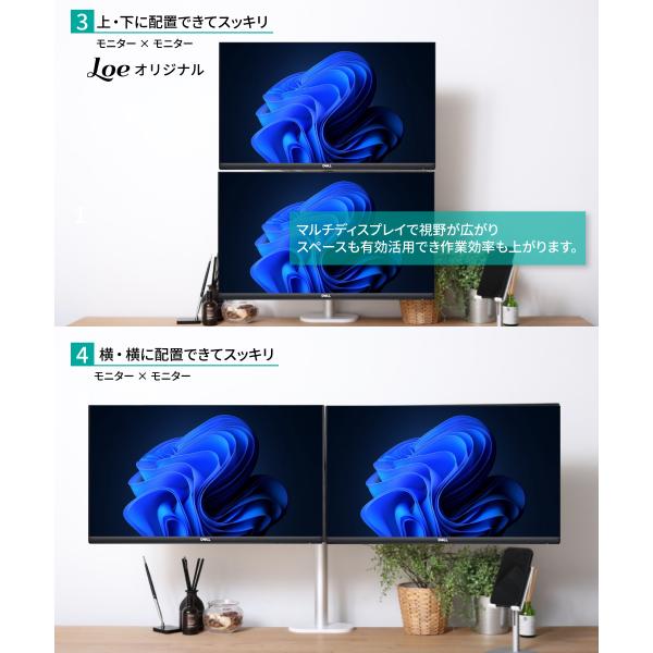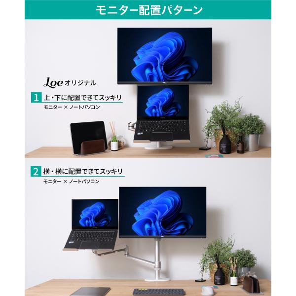 LOE(ロエ) デュアル モニターアーム ・ ノートパソコン ディスプレイアーム VESA 2画面 縦 にも並べられるロングタイプ LOLL3L ProX ( シルバー / ブラック )