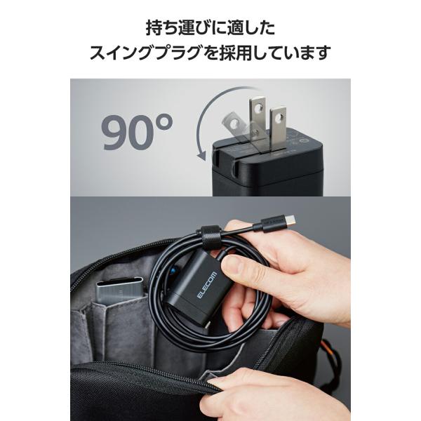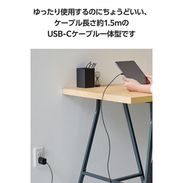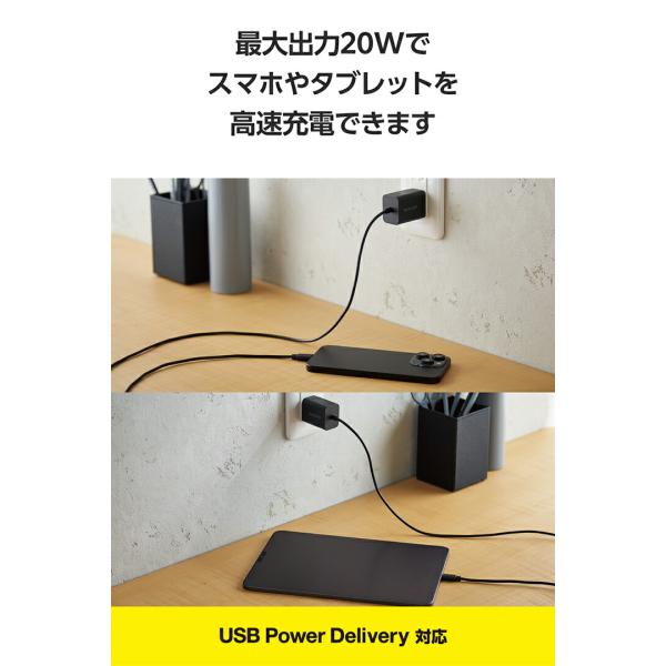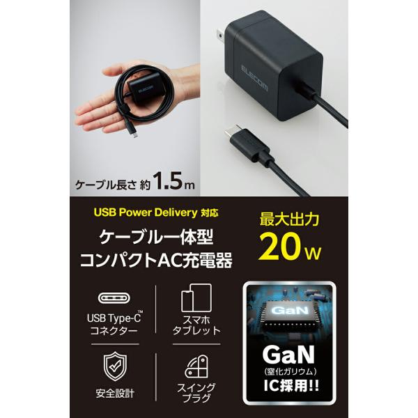 エレコム スマホ・タブレット用 USB Power Delivery 20W ケーブル一体型 AC 充電器 USB-C ケーブル一体 タイプC type-c 1.5m ブラック EC-AC6920BK