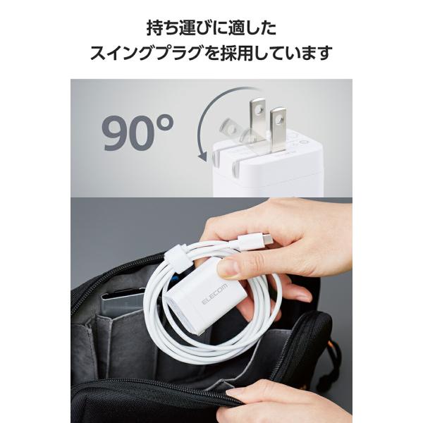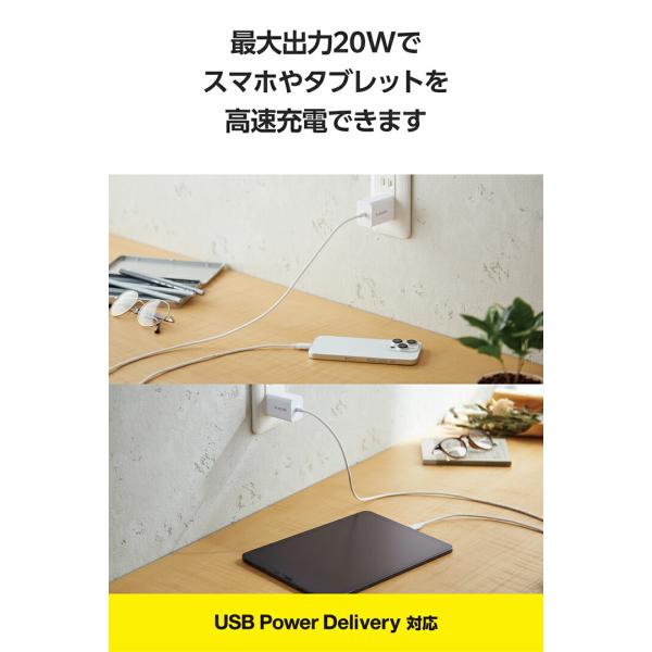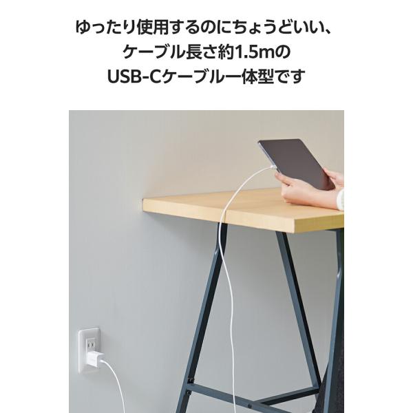エレコム スマホ・タブレット用 USB Power Delivery 20W ケーブル一体型 AC 充電器 USB-C ケーブル一体 タイプC type-c 1.5m ホワイト EC-AC6920WH