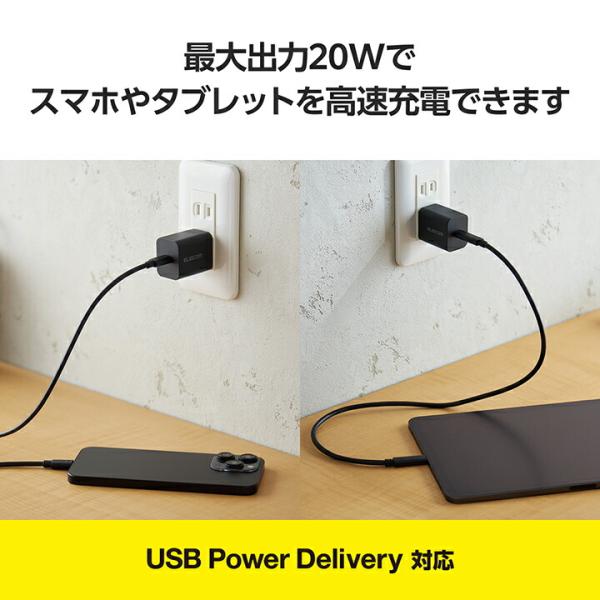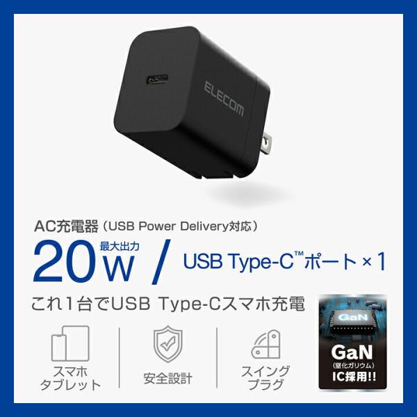 エレコム スマホ・タブレット用 USB Power Delivery 20W AC充電器 C×1 USB 充電器 USB-C1ポート ブラック MPA-ACCP6820BK