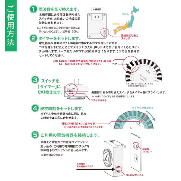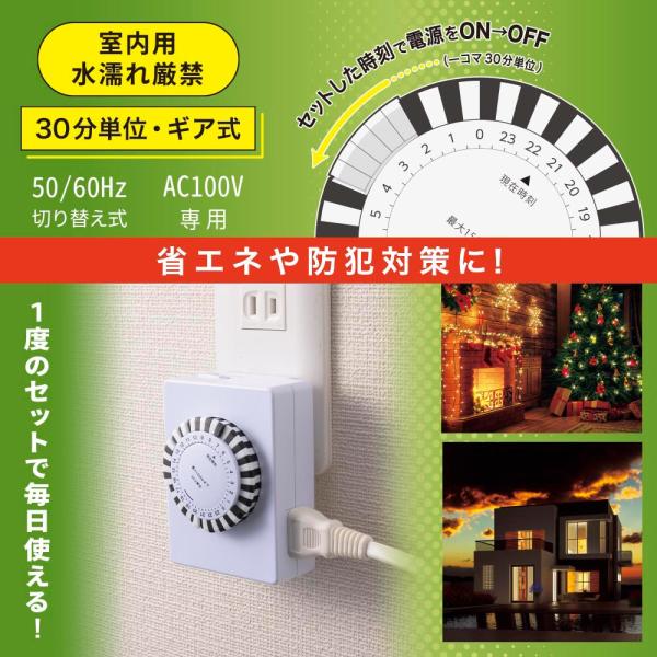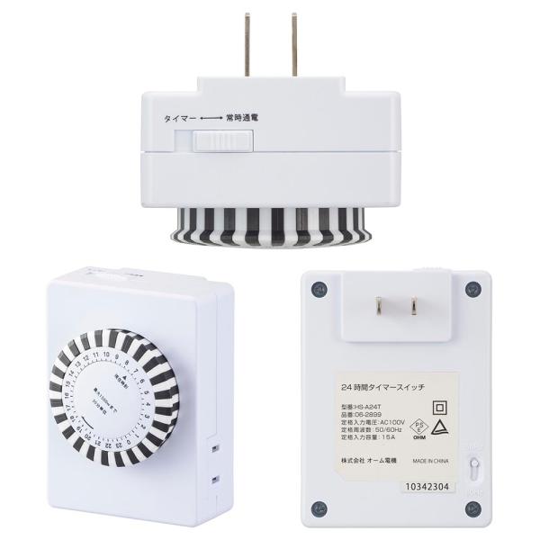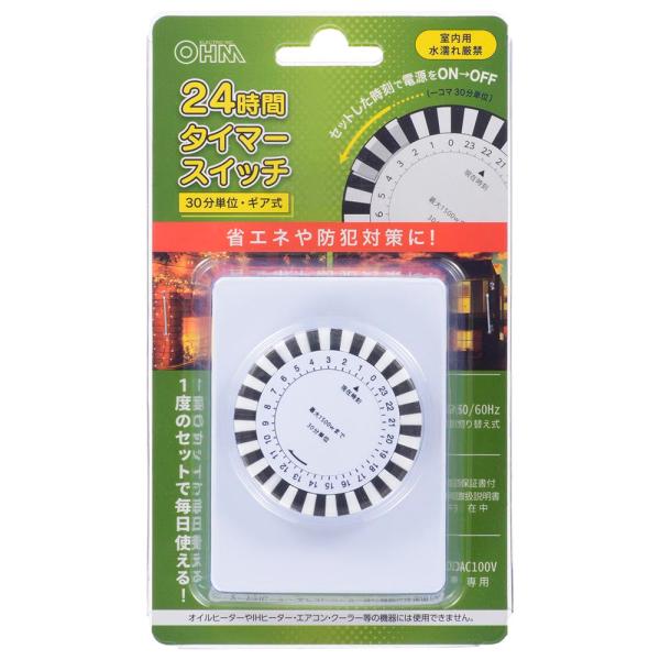 電源タイマー コンセントタイマー 30分単位ギア式 アナログ 24時間タイマースイッチ|HS-A24T 06-2899|OHM(オーム電機)