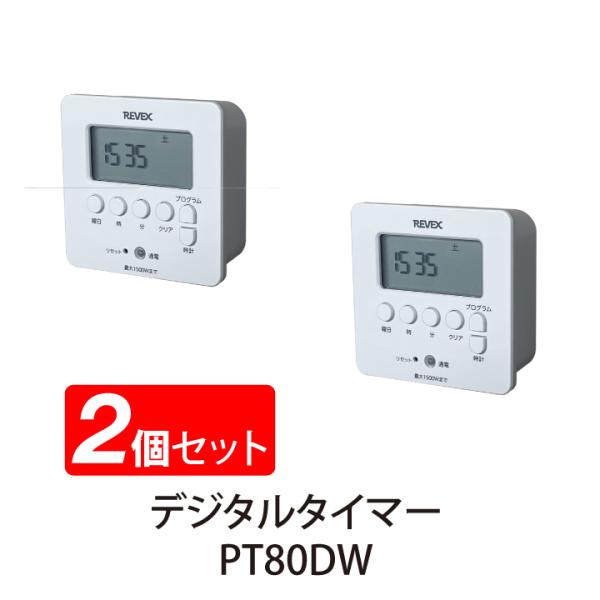 送料無料 コンセントタイマー 簡単 デジタルタイマー ホワイト ブラック PT80 水槽 クリスマスツリー イルミネーション こたつ 2個セット リーベックス