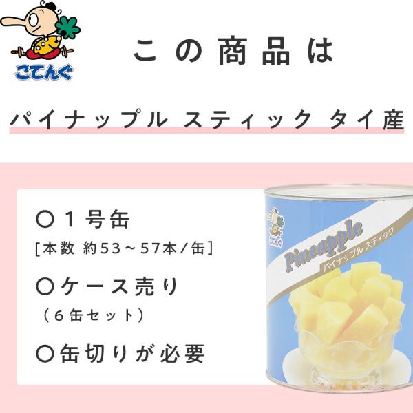 パイナップル スティック缶詰 6缶セット タイ産 1号缶 冷やしパイン 業務用 天狗缶詰 缶詰セット フルーツ缶 フルーツ 果物 パイン 保存食 非常食 備蓄 防災