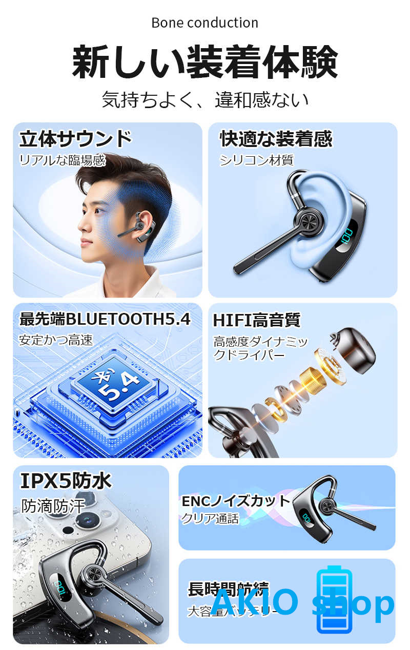 骨伝導イヤホン Bluetooth5.4 ヘッドホン PSE認証 HiFi高音質 耳かけ式 長時間航続 Type-C充電 IPX5防水 防滴防汗 LED残電表示 270度回転可能