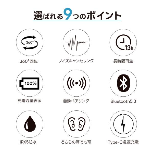 耳掛け型 ワイヤレスイヤホン Bluetooth 5.3 ノイズキャンセリング iPhone android Type-C 15h再生 片耳 i33