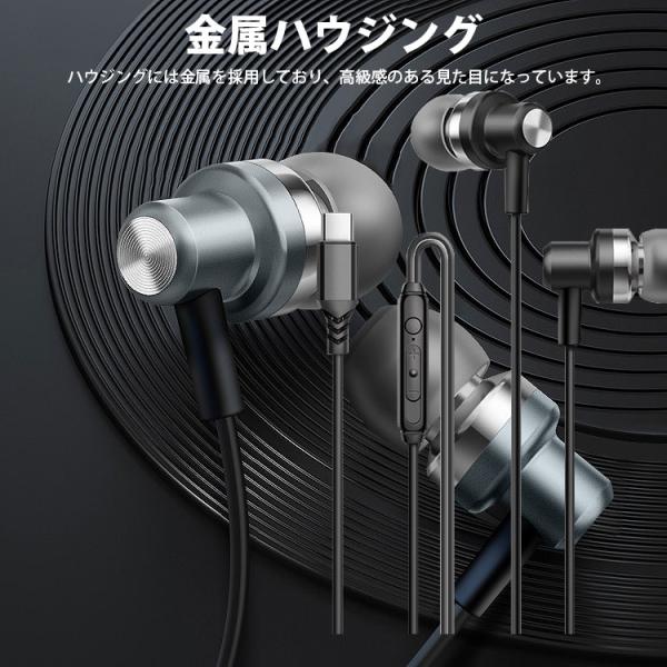 Type-C イヤホン カナル型 iPhone15対応 マイク内蔵 リモコン付き スマートフォン タブレット USB C 音量調整 再生 停止 音楽 通話 有線接続