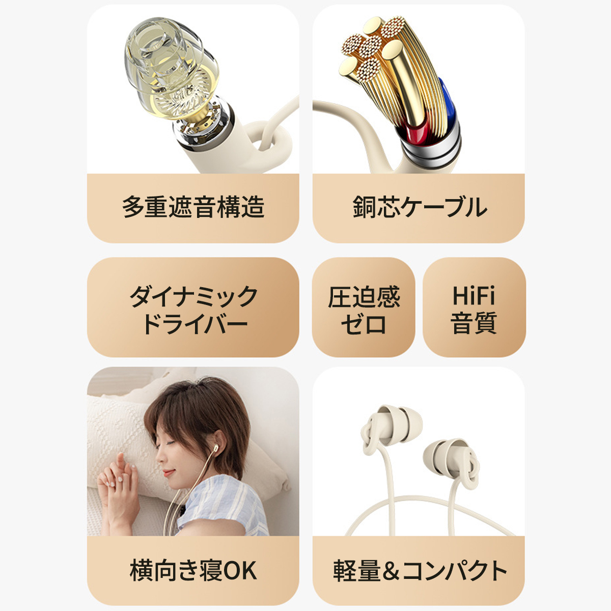 寝ホン 睡眠用イヤホン 寝ながら イヤホン 有線 耳栓 スリープホン 遮音 PNC ノイズキャンセリング カナル型 軽量 Type-C タイプC ステレオミニ プラグ リモコン
