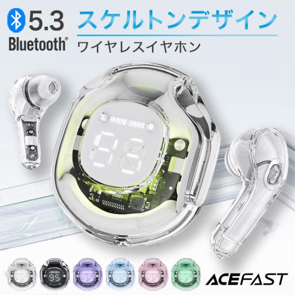 【正規代理店】 ワイヤレス イヤホン Bluetooth 5.3 iPhone Mac Android かわいい ノイズリダクション クリア スケルトン ブランド AceFast エースファスト