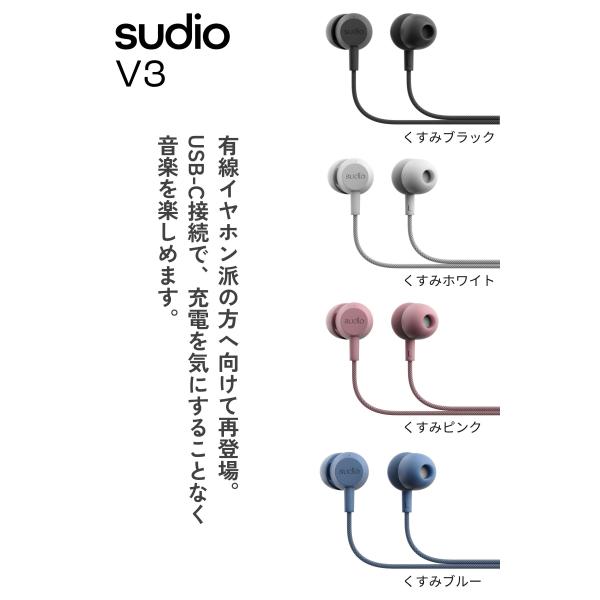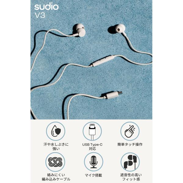 有線イヤホン SUDIO V3 スーディオ 全4色 USB タイプC カナル型 マイク搭載 北欧 ギフト 公式 国内正規品