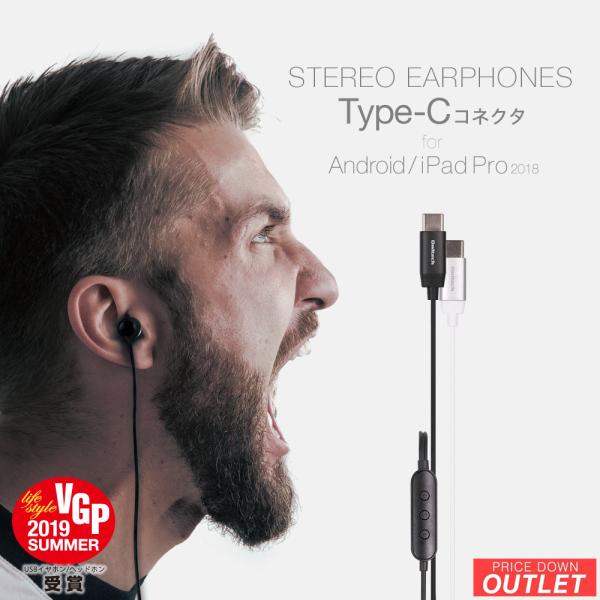 アウトレット商品 イヤホン USB Type-Cコネクタ用 有線 スマホ リモコン+マイク